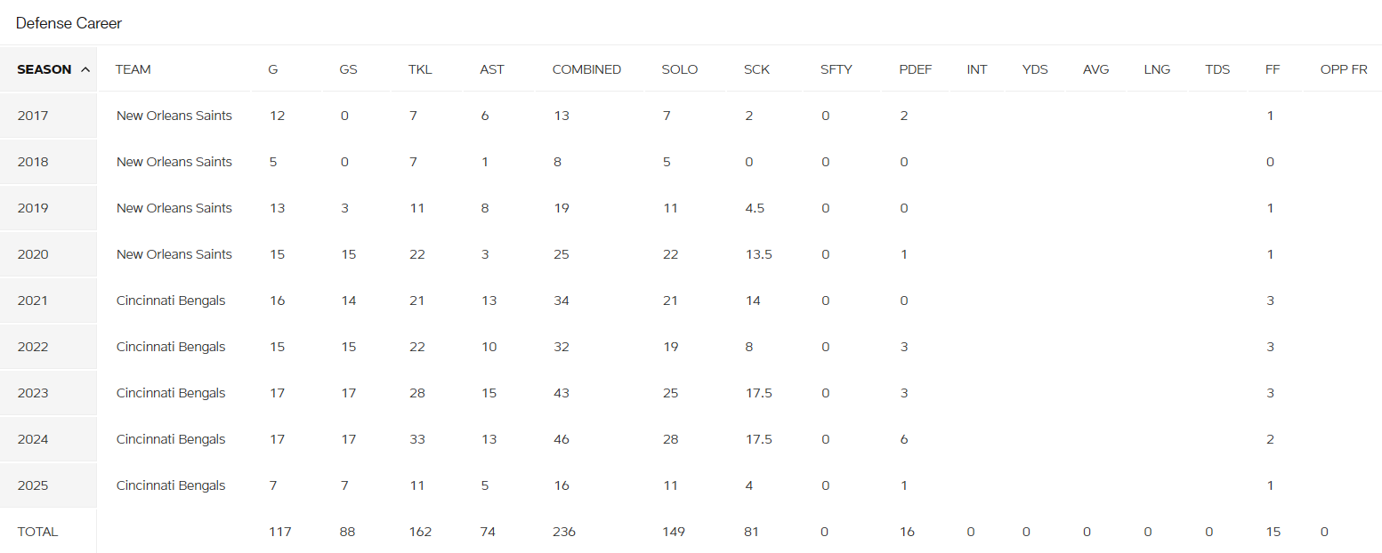 I Bengals hanno inserito Trey Hendrickson nella lista infortunati.