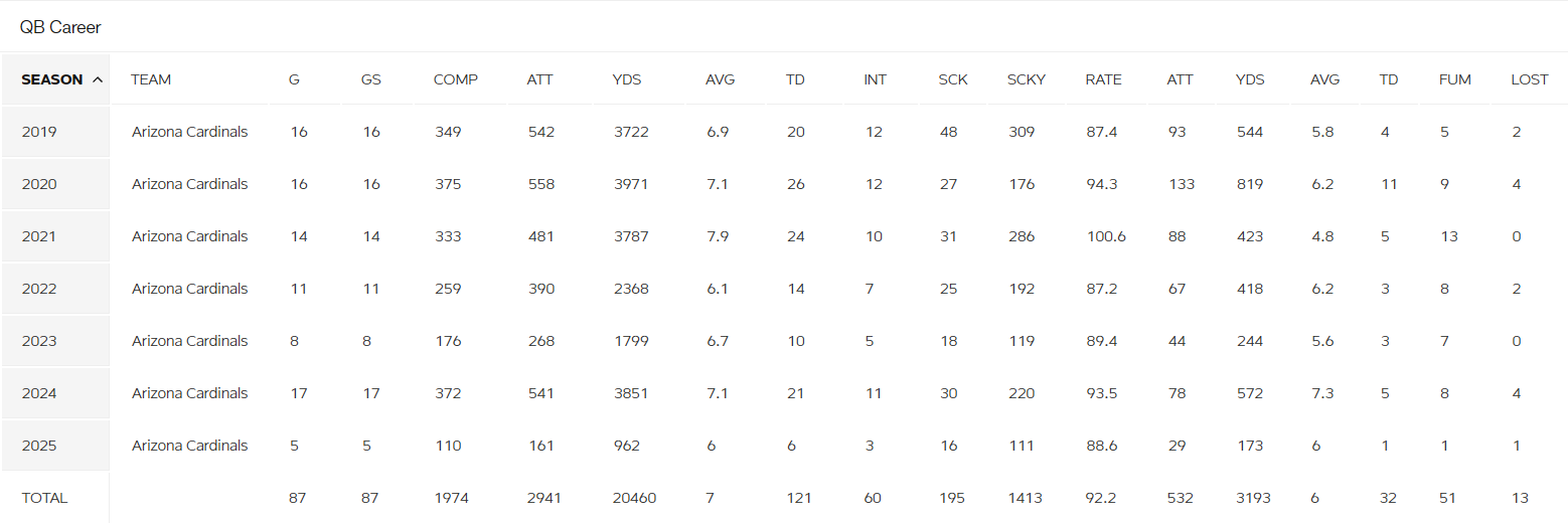 09/12/2025 - I Cardinals annunciano che il QB Kyler Murray non tornerà in campo durante questa stagione.