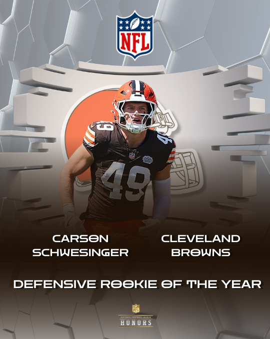 Il 5 febbraio 2026, il palco degli NFL Honors a San Francisco ha celebrato una delle storie più incredibili del football moderno. Carson Schwesinger, linebacker dei Cleveland Browns, è stato eletto AP Defensive Rookie of the Year (DROY) per la stagione 2025. Schwesinger, passato dall'essere un anonimo walk-on a UCLA a scelta del secondo giro, ha completato una scalata leggendaria vincendo il premio con 40 voti su 50 per il primo posto. Schwesinger non è stato solo il miglior debuttante, ma uno dei difensori più produttivi dell'intera lega. Ha guidato tutti i rookie per numero di placcaggi e Tackle for Loss (TFL), stabilendo record che a Cleveland non si vedevano da oltre vent'anni. Le sue statistiche ufficiali per la stagione 2025 includono: 146 placcaggi totali (il dato più alto per un rookie dei Browns dal 1999), 11 tackle for loss, 2 intercetti, 2,5 sack, 9 QB hits. La vittoria di Schwesinger è stata netta totalizzando 40 voti, staccando significativamente la concorrenza guidata dalla safety dei Seahawks, Nick Emmanwori (7 voti), e dal pass rusher dei Falcons, James Pearce Jr (2 voti). Con la vittoria di Schwesinger come miglior rookie e quella di Myles Garrett come Defensive Player of the Year, i Cleveland Browns diventano la prima squadra dal 2003 (dai tempi di Terrell Suggs e Ray Lewis ai Ravens) a vantare entrambi i vincitori dei premi difensivi principali nella stessa stagione. Schwesinger si proietta ora verso il 2026 come il nuovo pilastro della difesa di Cleveland.