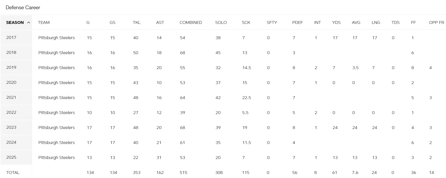 12/12/2025 - Watt è stato recentemente ricoverato in ospedale per un problema polmonare e, sebbene sia stato dimesso, è ancora escluso dalla partita di lunedì sera contro i Dolphins. Non si prevede che rimarrà fuori per molto tempo a causa di questo problema, ma la squadra vuole trattarlo con la massima cautela e lasciarlo fuori questa settimana. La difesa di Pittsburgh sarà molto più debole del solito durante la sua assenza.
